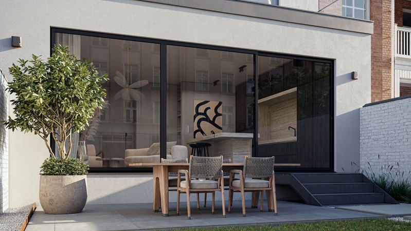 Les fenêtres, portes et portes coulissantes de la gamme WarmCore ont un revêtement en poudre élégant et une belle finition d’angle.