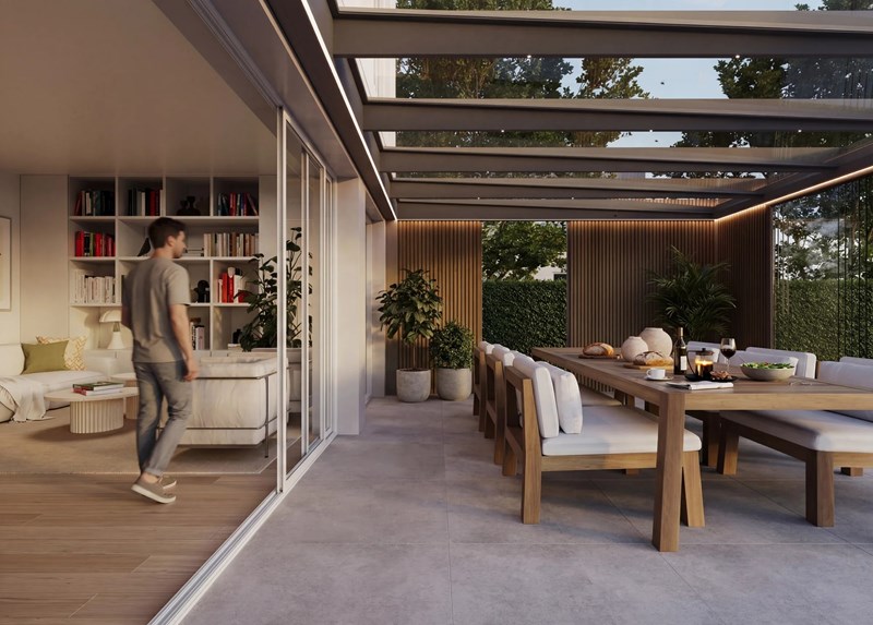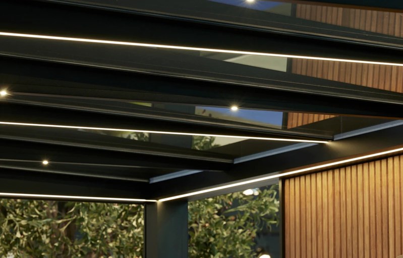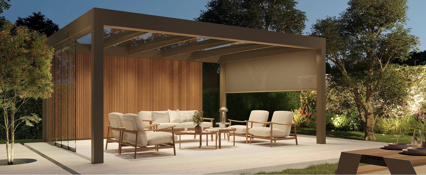 Grâce à la pergola Calista de Skylux, vous associez design contemporain et fonctionnalité à votre habitation. Elle se distingue par ses nombreuses options de personnalisation, parfaitement adaptées à chaque configuration, ainsi que par l’intégration harmonieuse d’accessoires assortis. Les screens verticaux en option sont entièrement intégrés et parfaitement guidés, garantissant une finition soignée. Le vitrage, maintenu par de fins supports horizontaux, offre une esthétique élégante et parfaitement équilibrée.