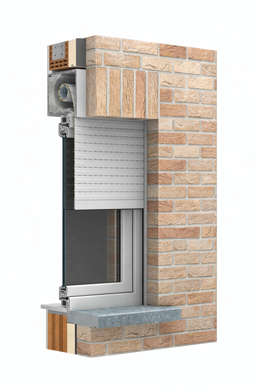 - Le caisson monobloc s’intègre directement à la fenêtre ou à la porte, assurant une finition propre et discrète.